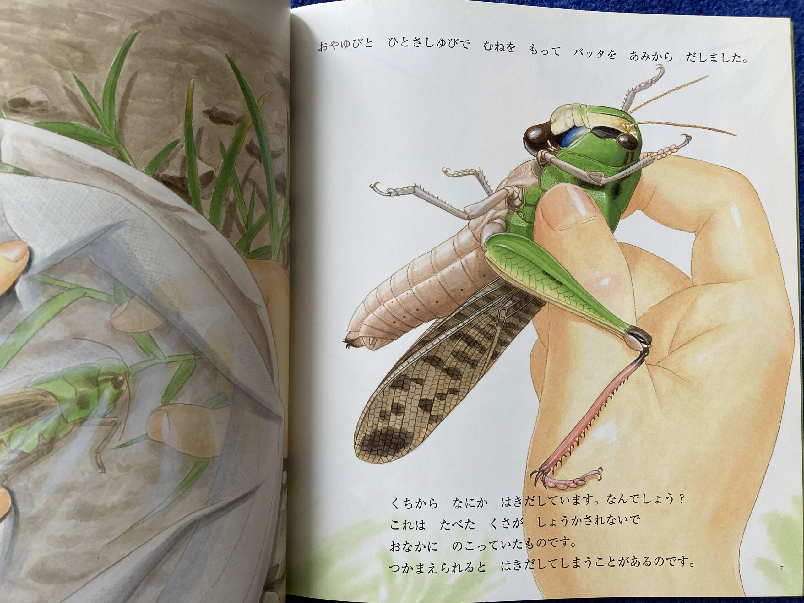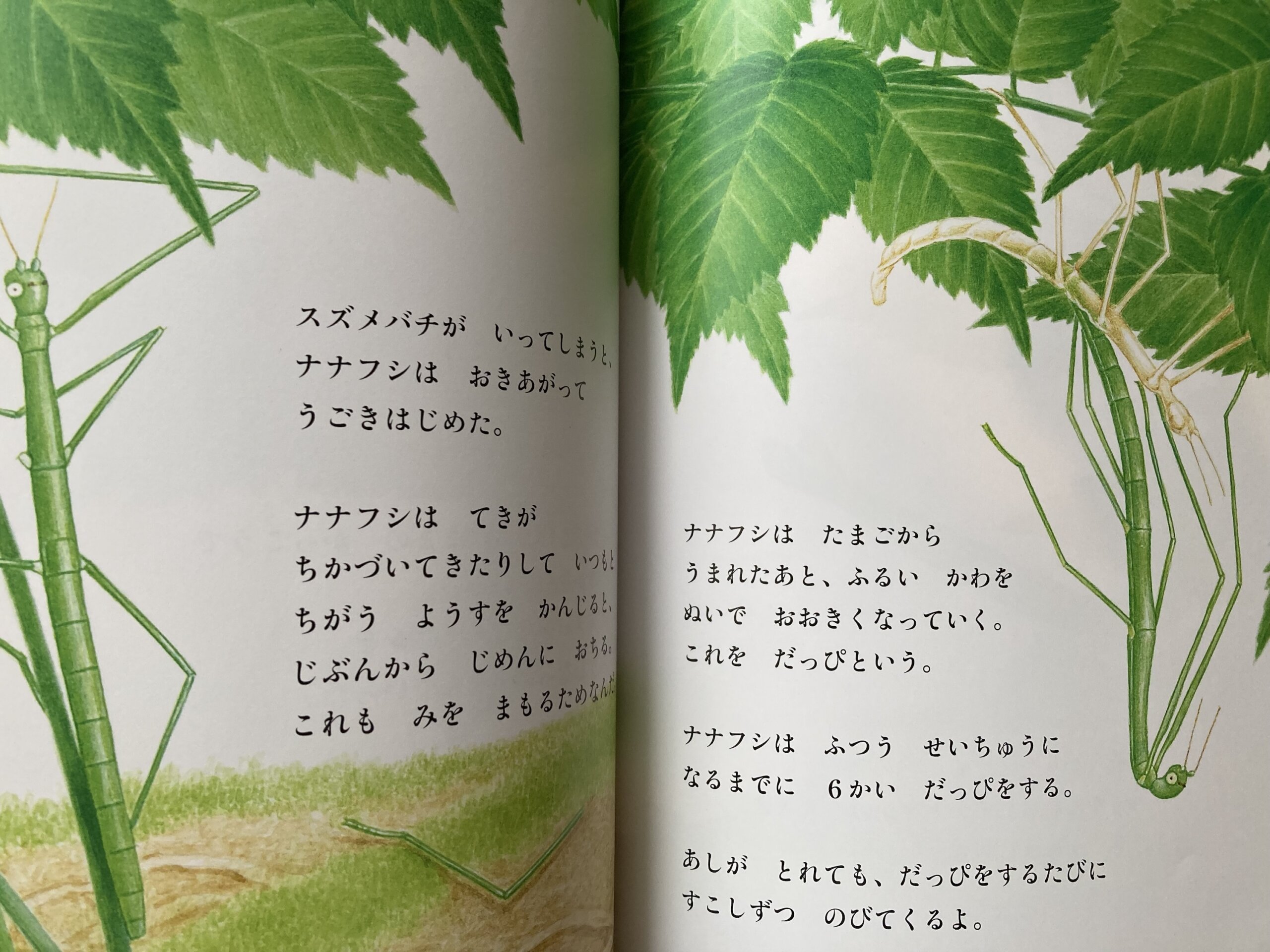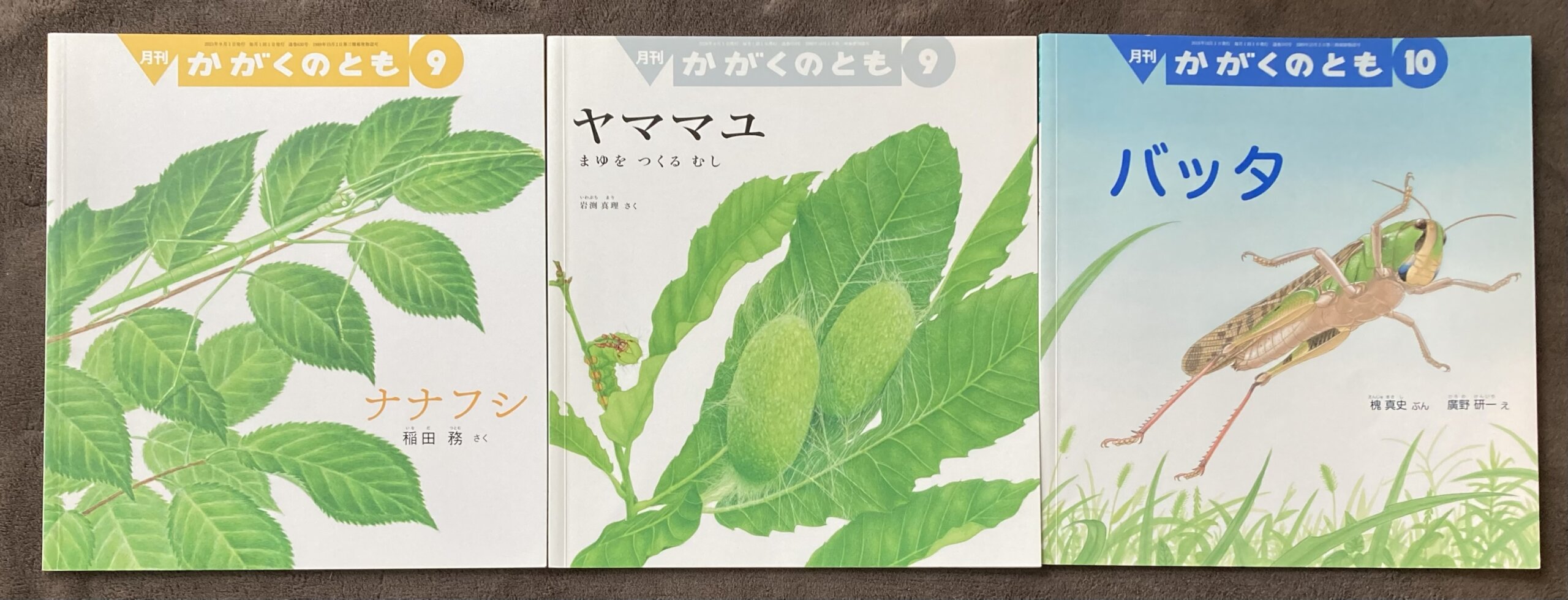 葉っぱのようにじっと動かないナナフシ、糸を何百メートルもつむぐヤママユ、草むらのジャンプの名人バッタ。じっくり観察してみよう。
