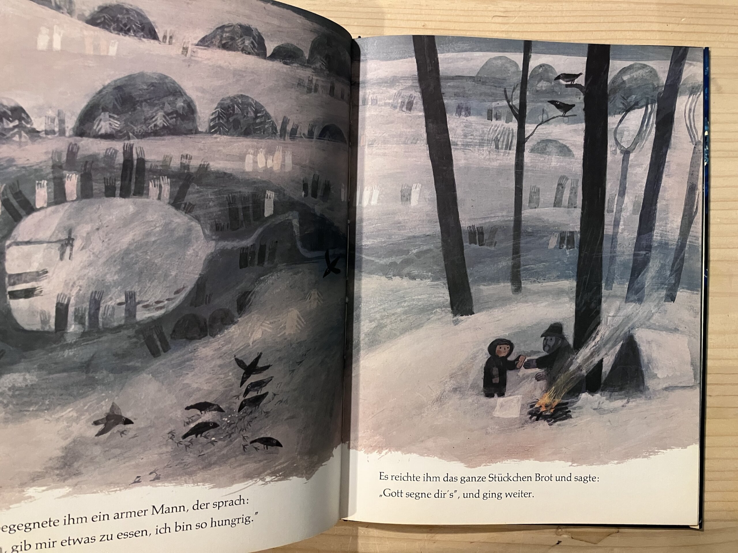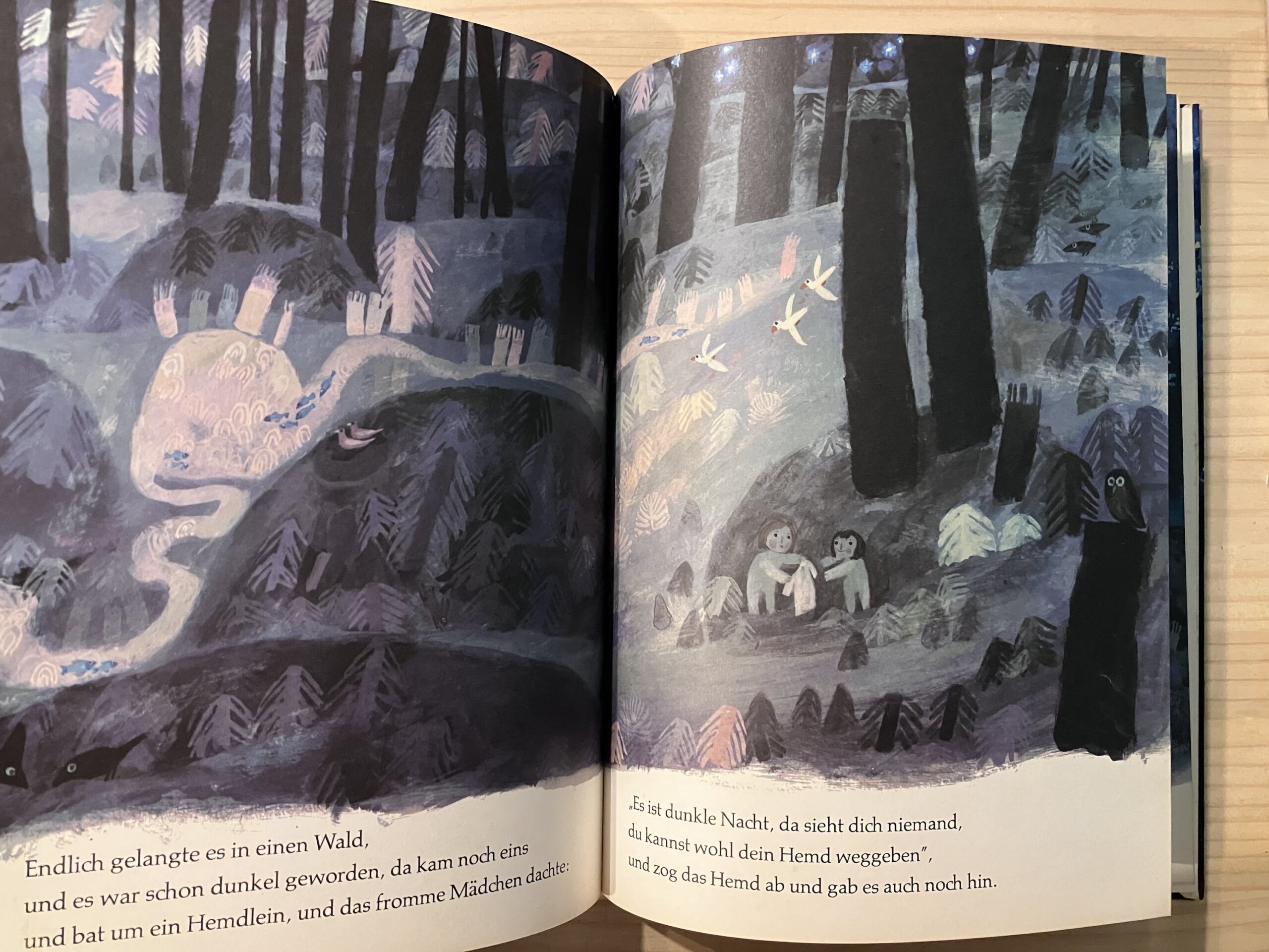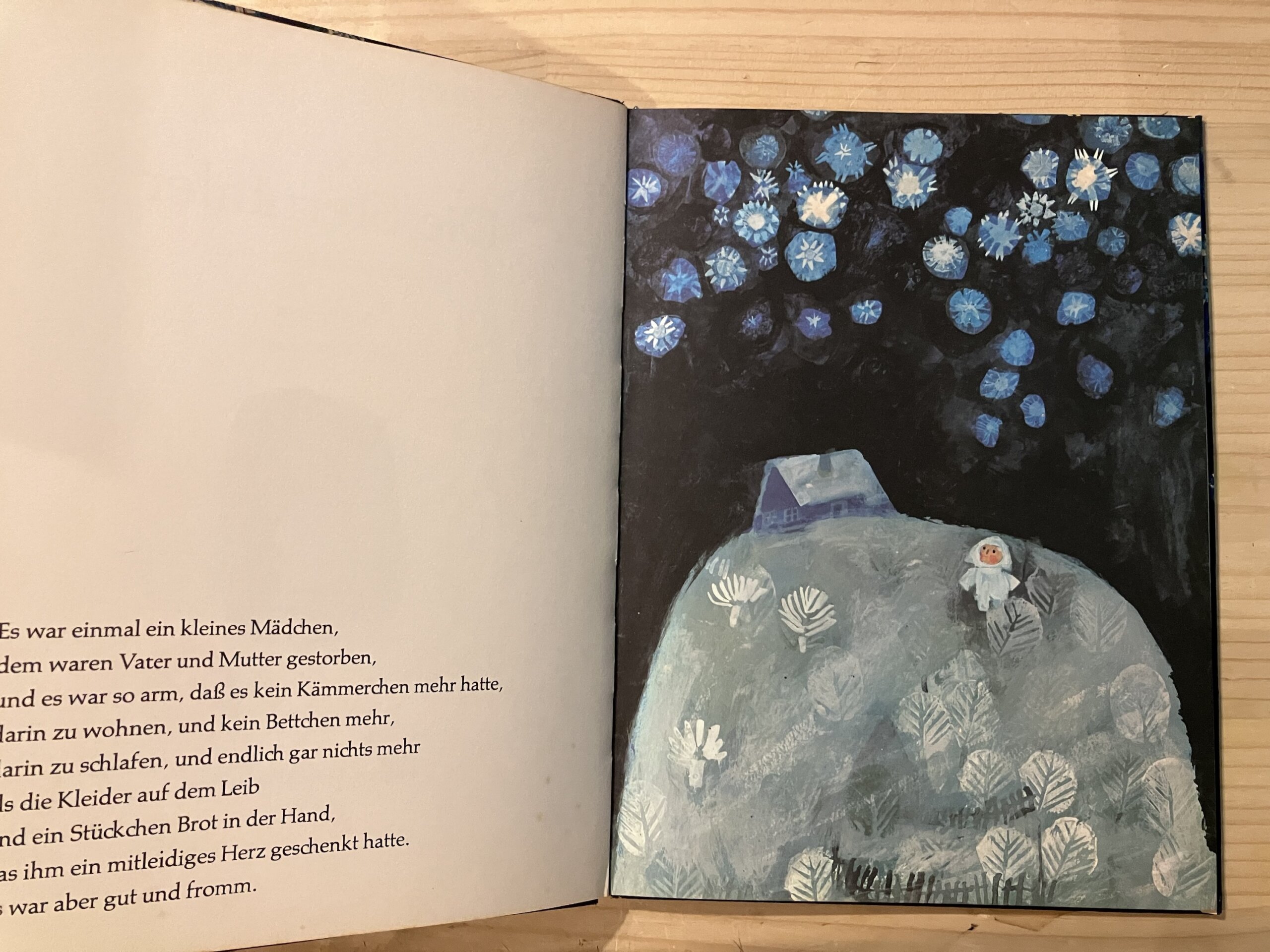 幻想的で詩的な筆致を活かして挿絵を手がけたグリム童話『星の銀貨(Sterntaler)』は、